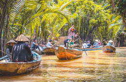 8:00AM: You will be picked up at your hotel in the morning, and we will bring you down to the Mekong Delta. On the way you will get a chance to view the beautiful scenery as we go past the stunning rice fields. Upon arrival at My Tho, take a relaxing boat trip on the Mekong River to enjoy the fresh air and the charming stilt house at the river bank. Then, visit the authentic life of the locals and challenge yourself to bargaining at cottage handicraft shops. Take an adventurous sampan ride in palm shaded canals.
